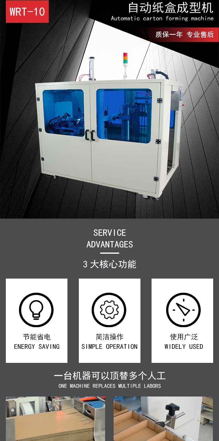 介紹:自動(dòng)紙盒成型機(jī)采用氣動(dòng)控制,通過模具自動(dòng)折蓋成型,紙瓣自動(dòng)鎖住紙板,使紙板成型不需要膠帶或熱熔膠粘合。操作簡(jiǎn)單,穩(wěn)定。該款紙盒成型機(jī)廣泛應(yīng)用于電器、玩具、食品、服裝、汽車用品等行業(yè)。 產(chǎn)品別稱:全自動(dòng)開箱機(jī)、高速開箱機(jī)、立式開箱機(jī)、臥式開箱機(jī)、電商開箱機(jī)、快遞開箱機(jī)、伺服開箱機(jī)、紙箱開箱機(jī)
